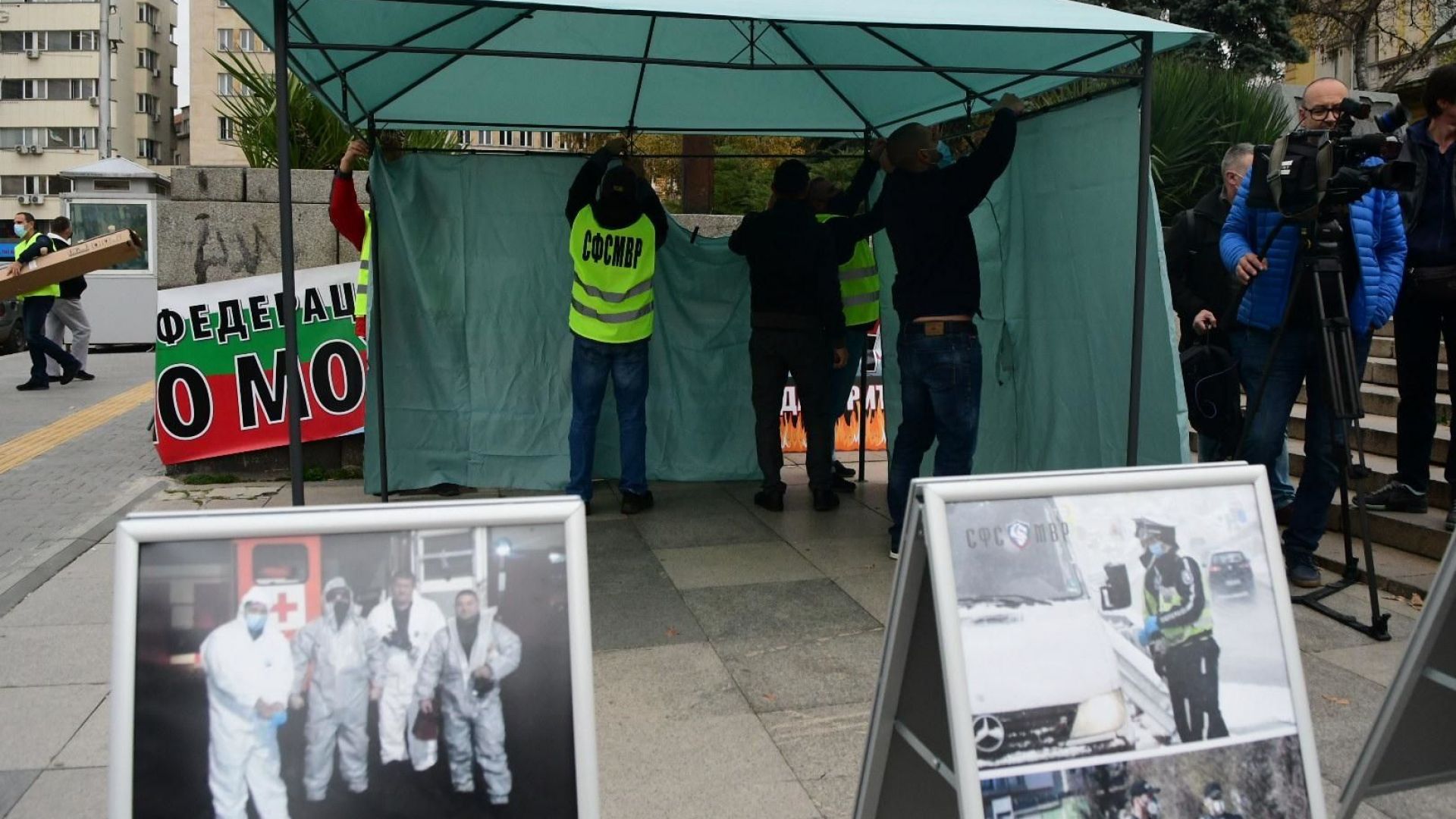 Най-големият полицейски синдикат в МВР опъна палатка и подреди изложба пред сградата на Народното събрание. За действията си от СФСМВР предупредиха с писмо, а поводът – исканото увеличение на заплатите.