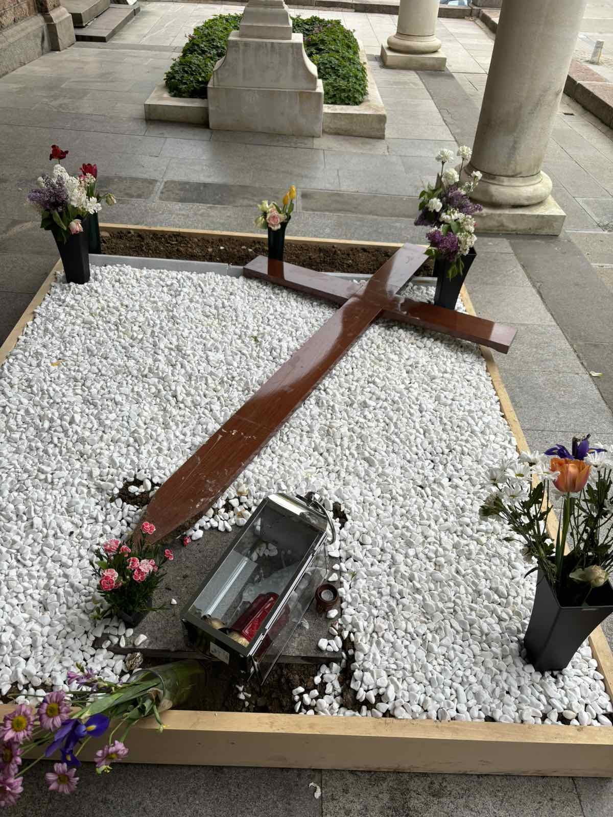 Кръстът е изваден от гроба и част от него е счупена, както и част от мрамора, обграждащ гроба на упокоилия се предстоятел на БПЦ.
