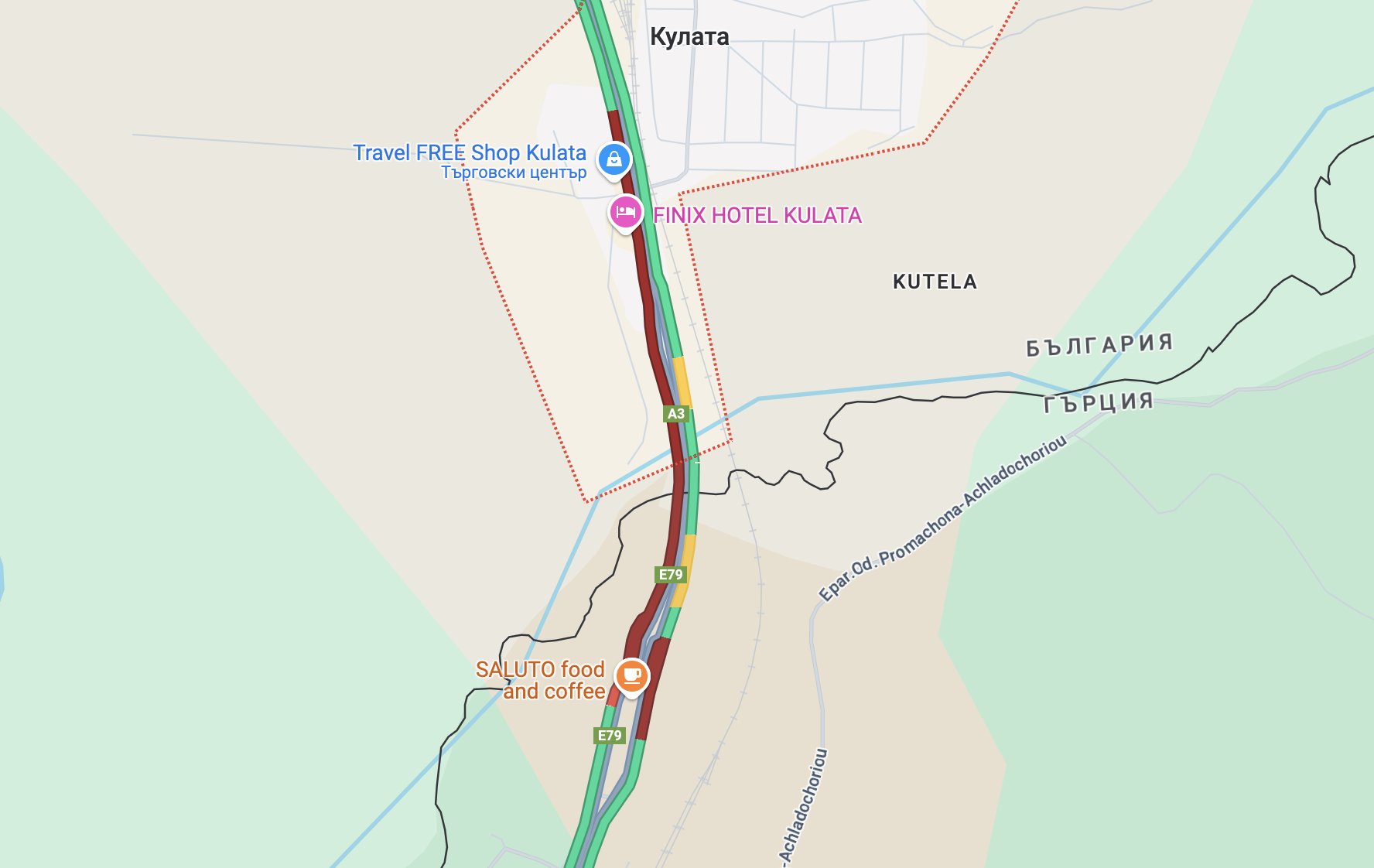 В навечерието на Нова година между 40 и 50 минути отнема преминаването на граничния пункт „Кулата“. Трафикът по автомагистрала „Струма“ е натоварен в посока ГКПП-то, като опашката от автомобили след Благоевград е километрична.