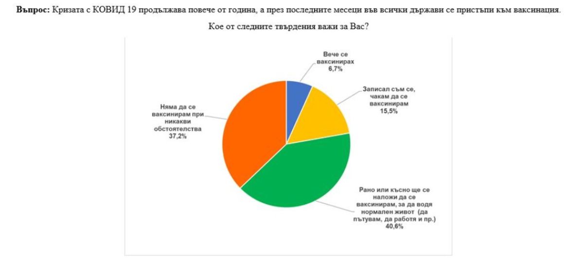 Така, общо 62,8% от интервюираните българи в настоящото изследване мислят, че пътят им към бъдещ нормален живот минава през ваксиниране.