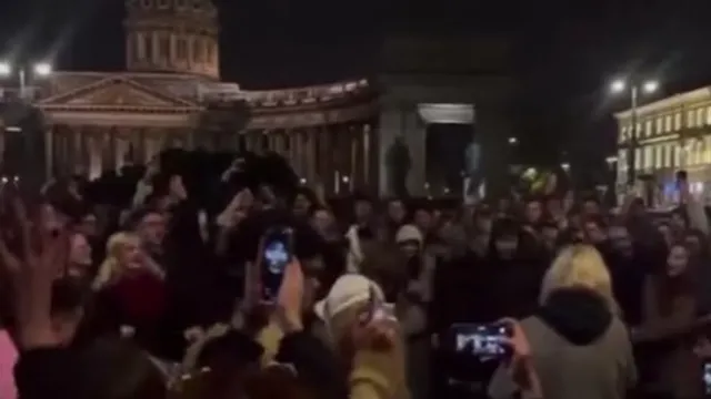 Тълпа от млади хора се събра и запя антивоенни песни на площад „Казанская“, включително забранената песен Swan Lake Collective на руския рапър Noize MC.