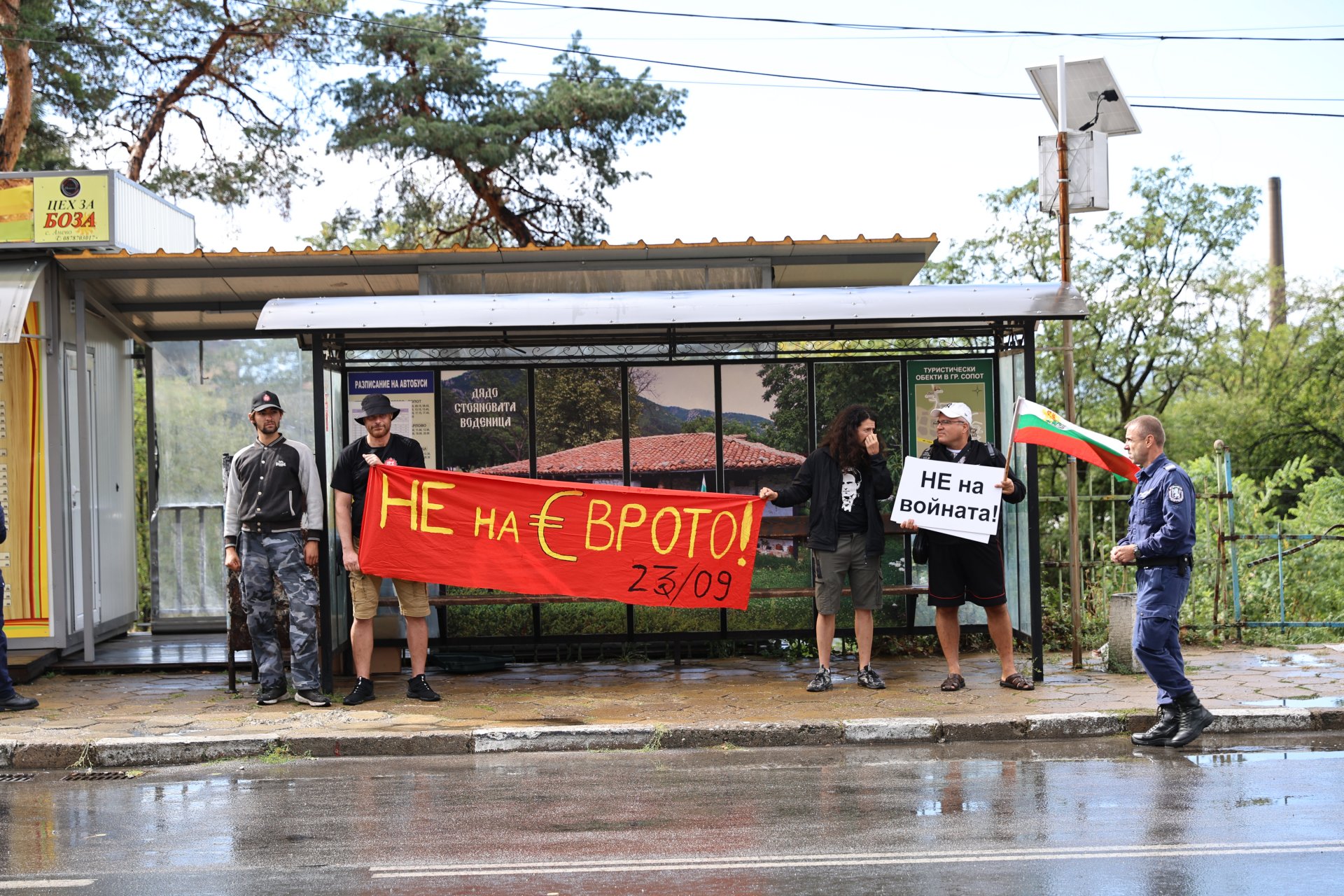 Двадесетина Привърженици на партия „Възраждане“ протестират на площада пред „Вазовските машиностроителни заводи“ (ВМЗ) в Сопот по повод на предстоящото днес посещение на премиера Росен Желязков и председателя на Европейската комисия (ЕК) Урсула фон дер Лайен в държавното предприятие, предава БТА.
