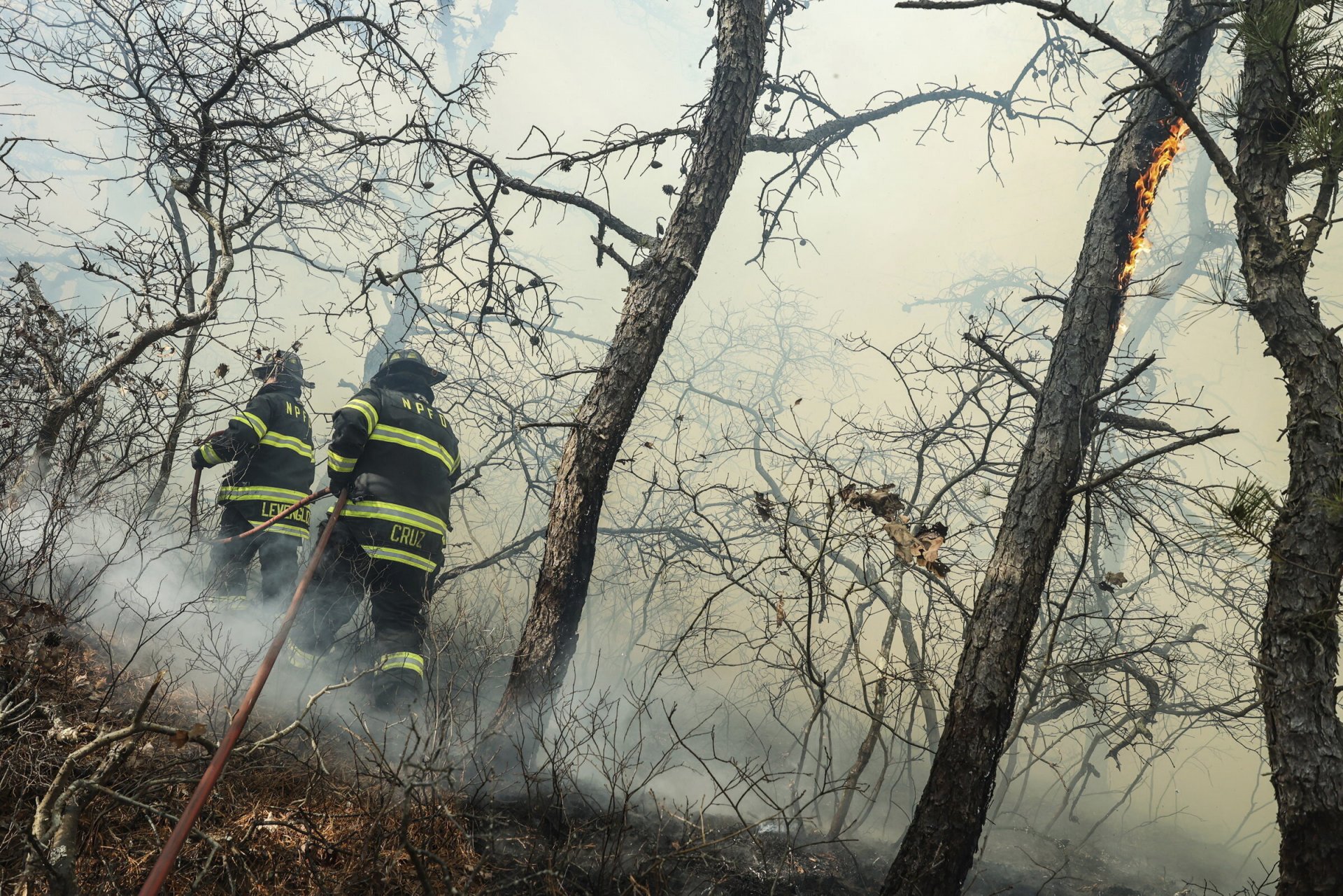 Губернаторката на Ню Йорк Кати Хоукъл обяви бедствено положение и съобщи, че служители на местните противопожарни служби са се включили в гасенето на пламъците около Пайн Барънс – горист район, в който са разположени предградия на Ню Йорк.