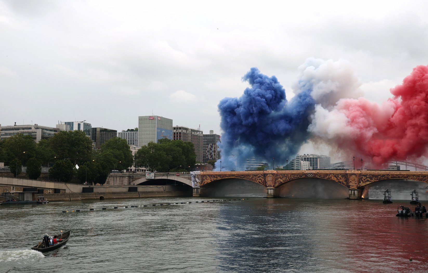 В началото на церемонията вниманието беше насочено към президента на Франция Еманюел Макрон и този на Международния олимпийски комитет Томас Бах, които гледат шоуто заедно. Малко след това един от мостовете над Сена беше оцветен с пушек с френските цветове, който се разпространи по цялата ширина на реката.