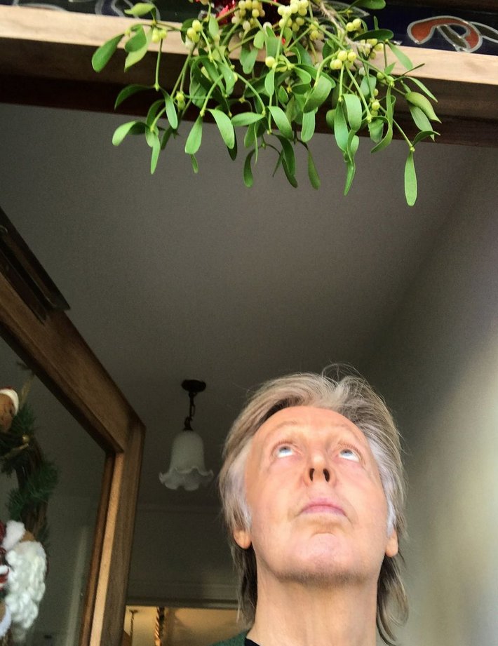 Звездата от „Бийтълс“ Пол Маккартни публикува своя снимка, на която гледа към клонка от имел над главата си и написа: „Желая ви наистина прекрасна Коледа – Пол“, с нахална препратка към празничната му хитова песен от 1979 г. и емоджи за целувки.