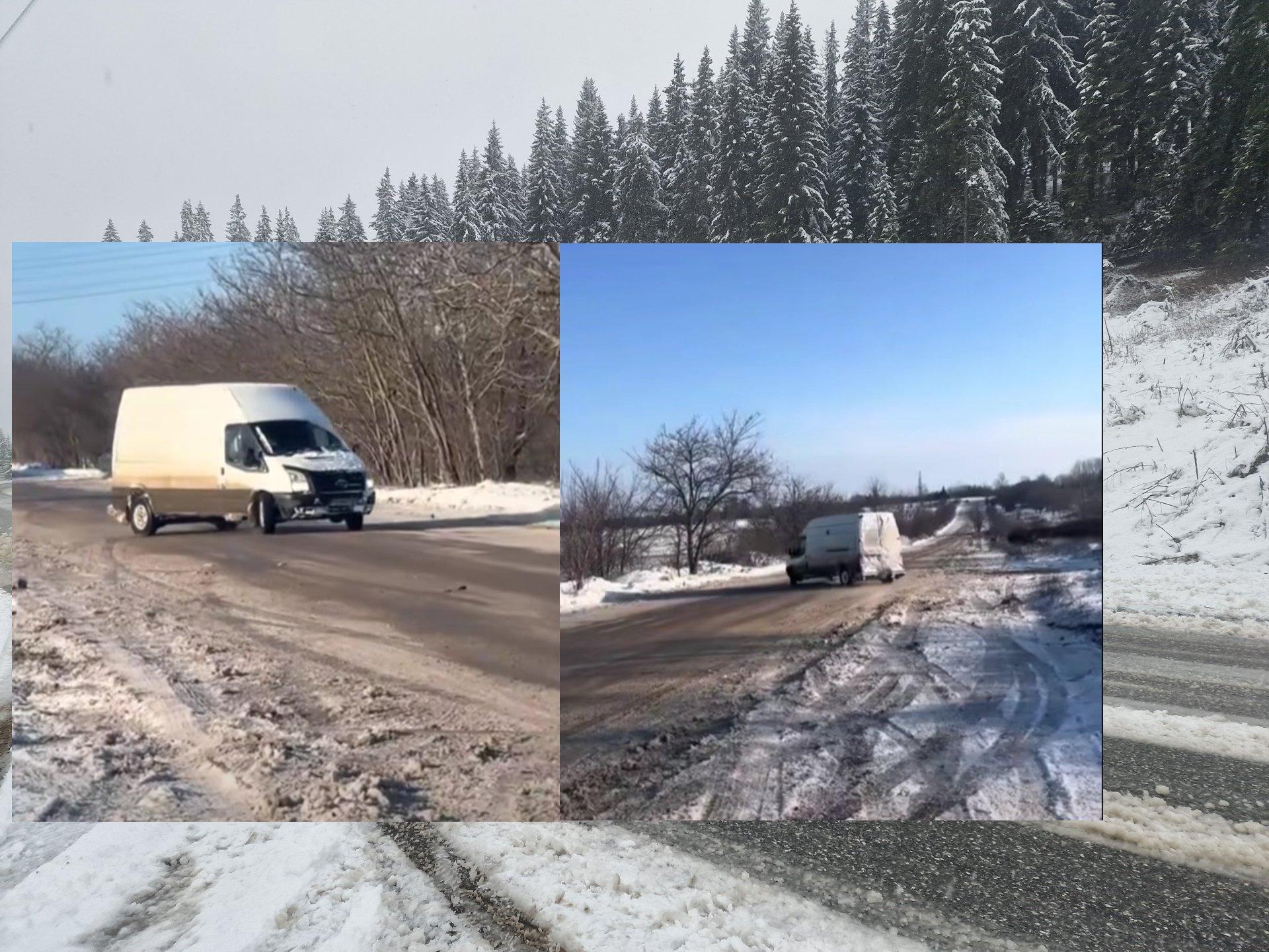 Той публикува видеозапис, от който се вижда добрички бус, загубил тотално контрол над превозното средство и криволичещ от единия до другия край на пътното платно някъде край София. Не е ясно дали е със зимни гуми, но бусът се носи по леда буквално на зигзаг.