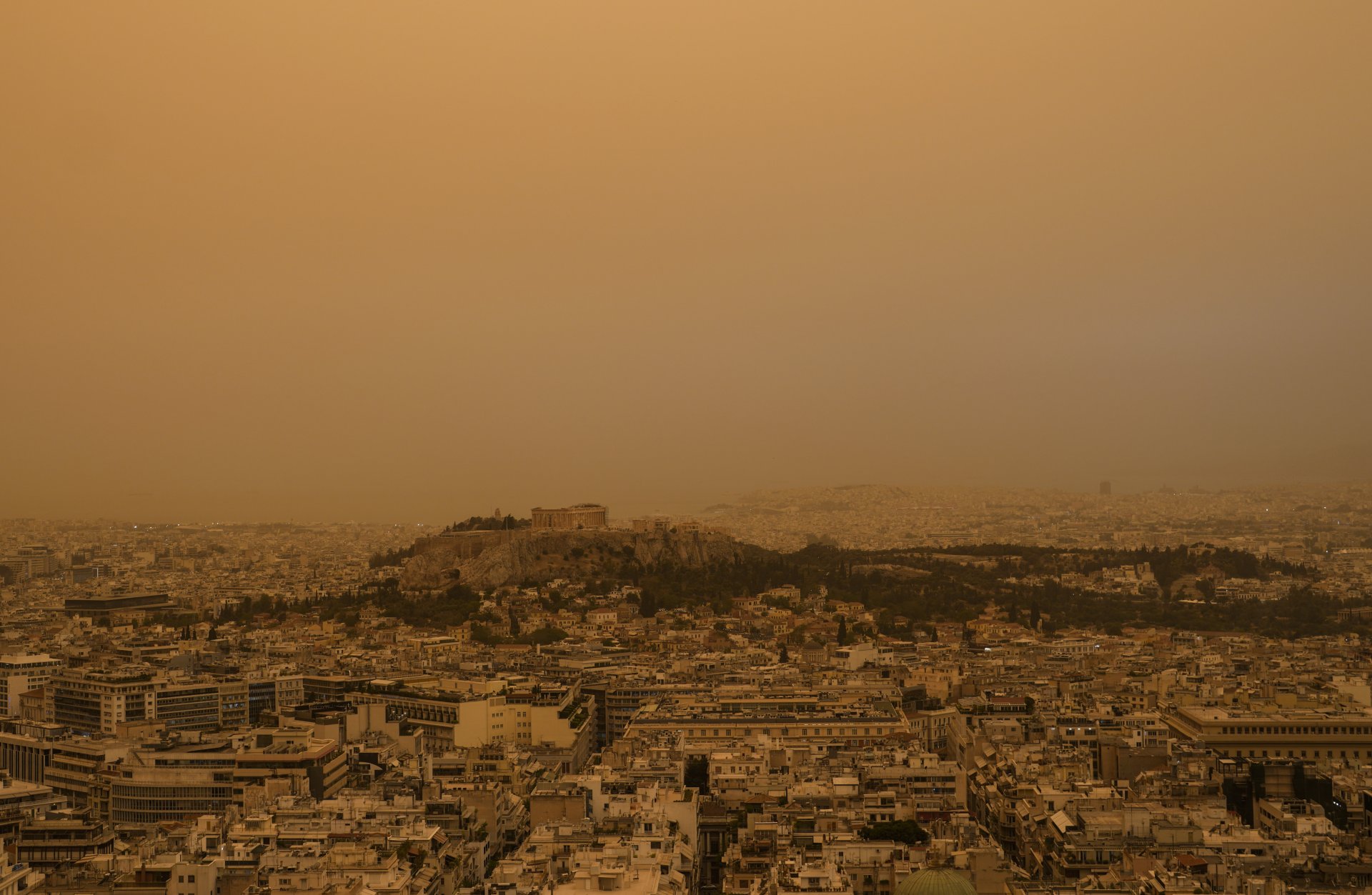 Атина и южните части на Гърция отново бяха покрити със сахарски прах, който създаде неземна атмосфера в гръцката столица, съобщи вестник „Катимерини“.