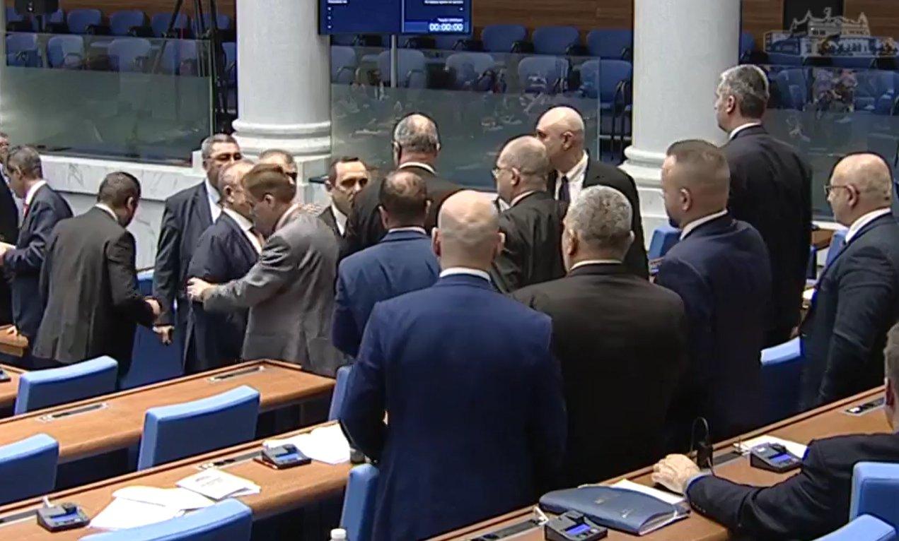 Председателят на Народното събрание Рая Назарян прекъсна за кратко заседанието на парламента заради спречкване в пленарната зала между депутати от „Възраждане“ и „Алианс за права