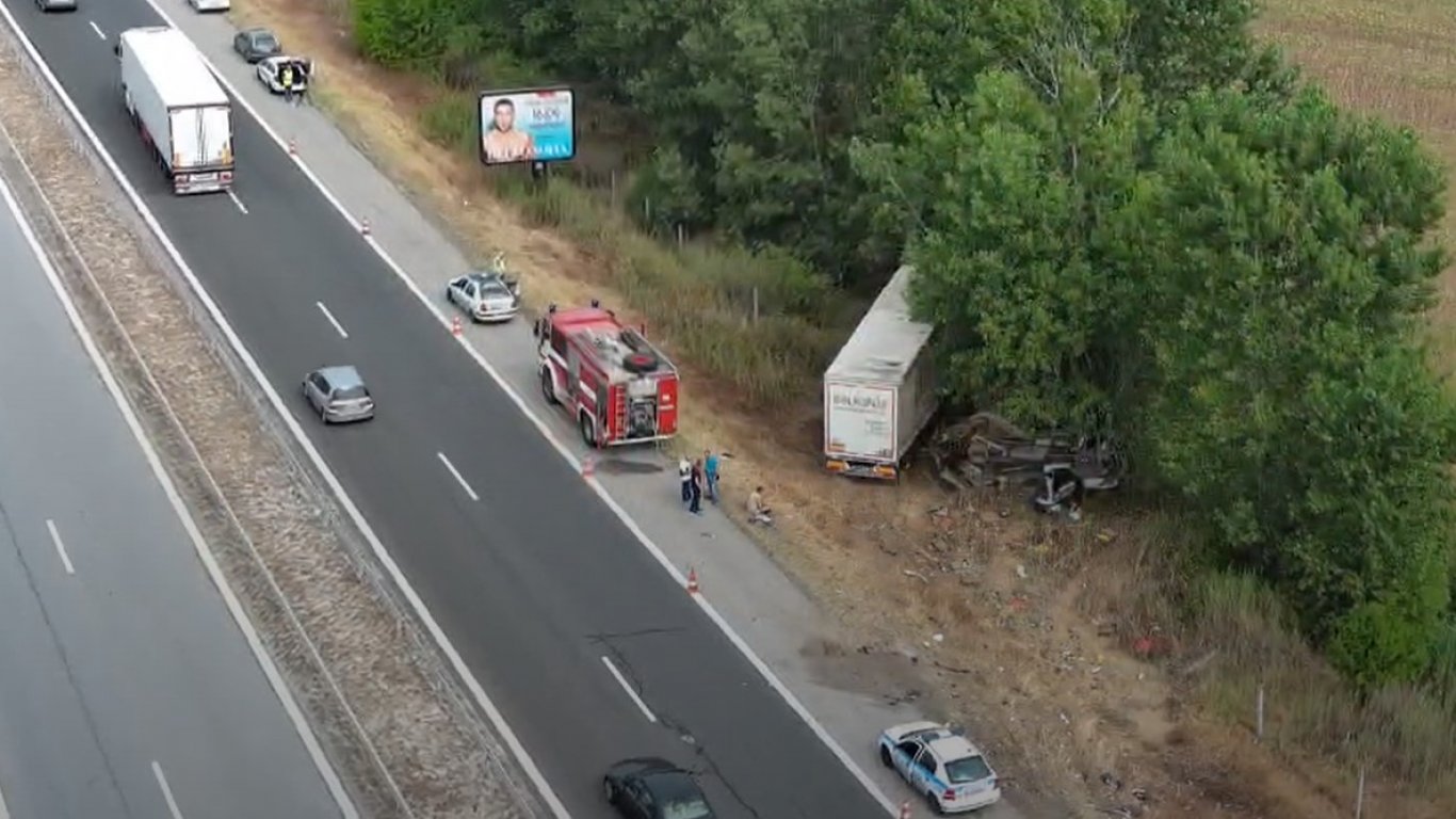 По първоначални данни тир с турска регистрация, управляван от турски гражданин, е блъснал намиращия се в аварийната лента микробус.