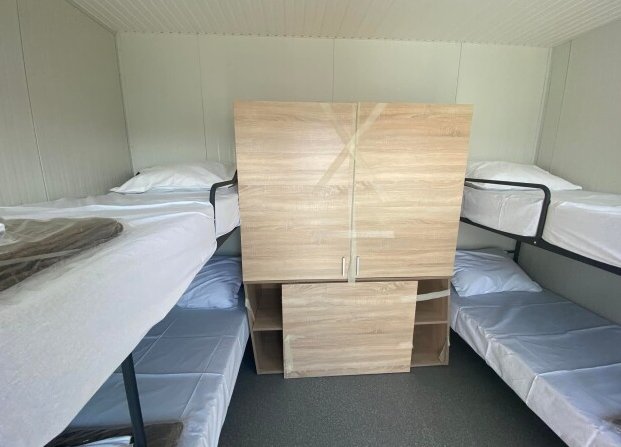 Фургоните са с размери около два на три метра. Оборудвани са с гардероб и общо четири легла – две легла на по два етажа. Баните и тоалетните са отделни, разположени в 40 фургона. Фургоните нямат климатици, но в момента тече обществена поръчка за доставката на над 300 броя, уточни Димитров.